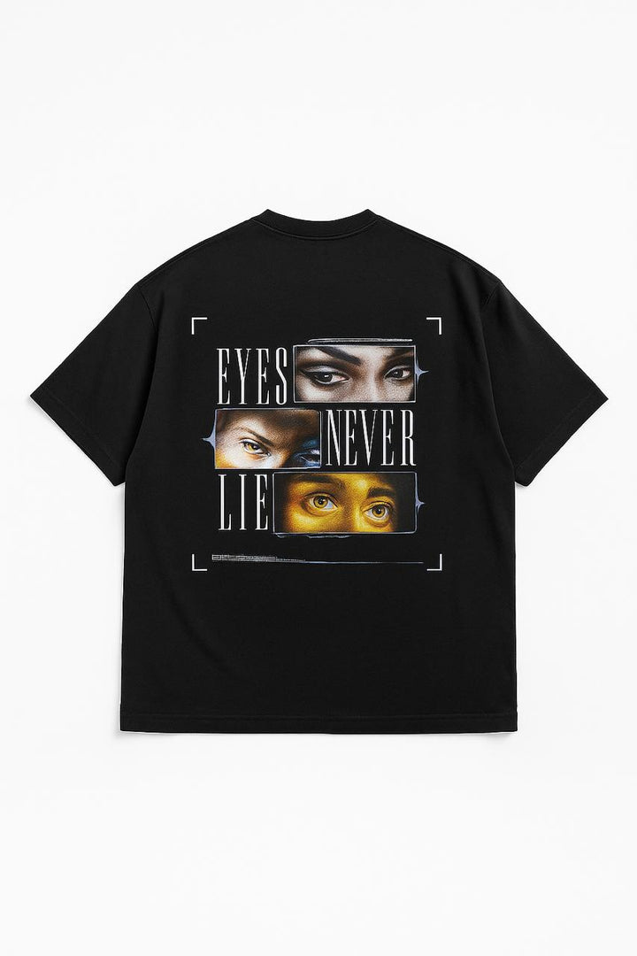 Design: Unique “Eyes Never Lie” graphic – bold, thought-provoking, and minimal